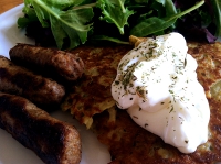 Green Salad, Latkes (Potato Pancakes) and Turkey Sausage